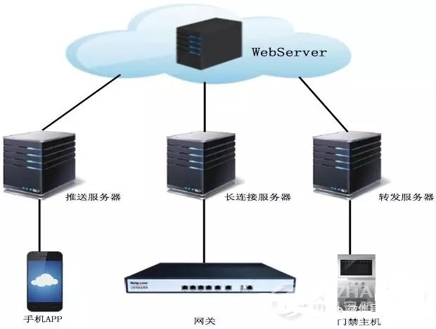 基于云計算的佳世通云對講系統(tǒng),從可靠性、安全性、高性能、和可管理性四項原則出發(fā),選取當下比較流行的SSM框架組(Spring + SpringMVC + MyBatis )來搭建一個云對講服務(wù)平臺,并整合Netty框架實現(xiàn)長連接服務(wù)、消息轉(zhuǎn)發(fā)等服務(wù)。佳世通云對講系統(tǒng)整個服務(wù)平臺包括佳世通云平臺(WebServer)、推送服務(wù)器(包括第三方推送服務(wù)器和長連接服務(wù)器)和轉(zhuǎn)發(fā)服務(wù)器,其平臺架構(gòu)如圖1所示。佳世通云平臺可以完成與手機、網(wǎng)關(guān)等接口的對接,實現(xiàn)包括消息推送、轉(zhuǎn)發(fā)、設(shè)備管理、平臺管理等功能。基于云計算的佳世通云對講系統(tǒng)是一套面向移動互聯(lián)網(wǎng)的創(chuàng)新產(chǎn)品,依托已有的傳統(tǒng)樓宇對講的成熟產(chǎn)品線和市場,融合云計算技術(shù)并以手機APP為入口,為小區(qū)居民提供更自然、和諧、智慧的家庭安防生活體驗,并幫助小區(qū)不斷提升物業(yè)管理效率。
